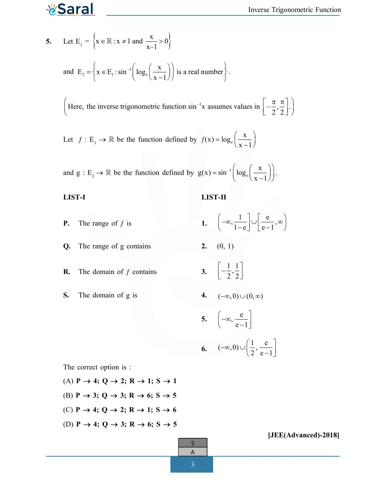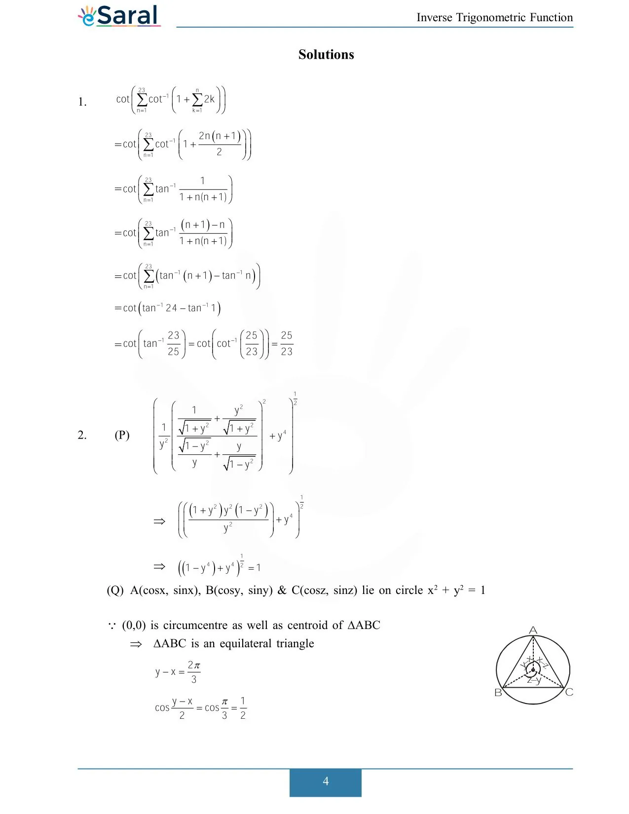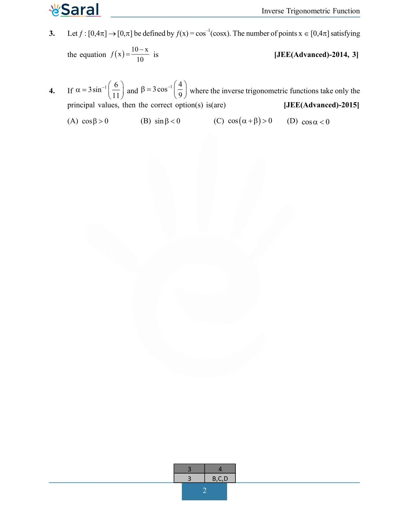 JEE Advanced Previous Year Questions of Math with Solutions are available at eSaral. Practicing JEE Advanced Previous Year Papers Questions of mathematics will help the JEE aspirants in realizing the question pattern as well as help in analyzing weak & strong areas. eSaral helps the students in clearing and understanding each topic in a better way. eSaral also provides complete chapter-wise notes of Class 11th and 12th both for all subjects. Besides this, eSaral also offers NCERT Solutions, Previous year questions for JEE Main and Advance, Practice questions, Test Series for JEE Main, JEE Advanced and NEET, Important questions of Physics, Chemistry, Math, and Biology and many more. Download eSaral app for free study material and video tutorials. Inverse Trigonometric Function