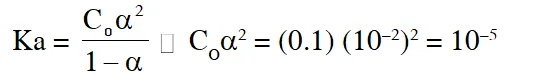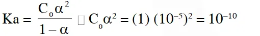 $\left[\mathrm{H}^{+}\right]=10^{-5}=\mathrm{C}_{\mathrm{o}} \alpha$