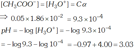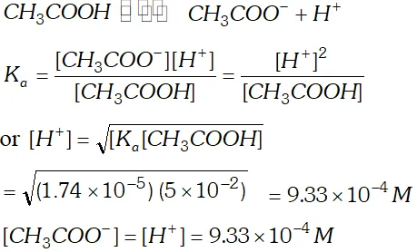 Q. The ionization constant of the $\mathrm{CH}_{3} \mathrm{COOH}$ is $1.74 \times 10^{-5} .$ Calculate the degree of the dissociation of acetic acid in its $0.05 \mathrm{M}$ solution. Calculate the concentration of the $\mathrm{CH}_{3} \mathrm{COO}^{-}$ and its $p H$
