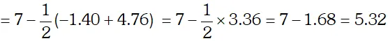 Ans. Number of meq of $\mathrm{NaOH}=100 \times \frac{1}{10}=10 \mathrm{meq}$ Number of meq of $H C l=100 \times \frac{1}{5}=20$ meq No. of meq of $H C l$ in $200 \mathrm{mL}$ solution on mixing $=10 \mathrm{meq}$ $200 m L$ of solution contains $10 \mathrm{meq}$ $=10 \times 10^{-3} e q=10 \times 10^{-3} \mathrm{moles}$ of $\mathrm{HCl}$ $=\frac{10^{-2}}{200} \times 1000=5 \times 10^{-2} \mathrm{mol} L^{-1}$ of $H C l$ $p H=-\log \left[H_{3} O^{+}\right]=-\log 5 \times 10^{-2}=-\log 5-\log 10^{-2}$ $=-0.6990+2.000=1.3010$