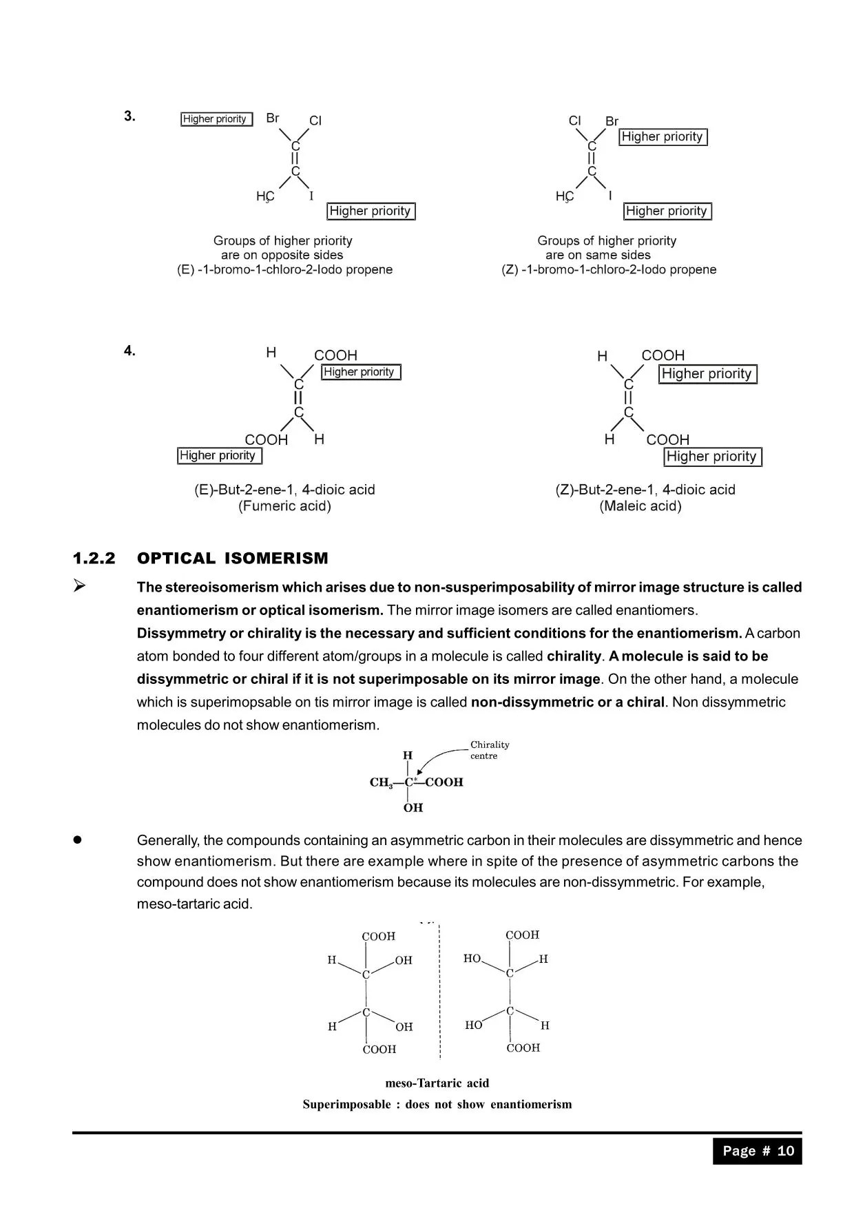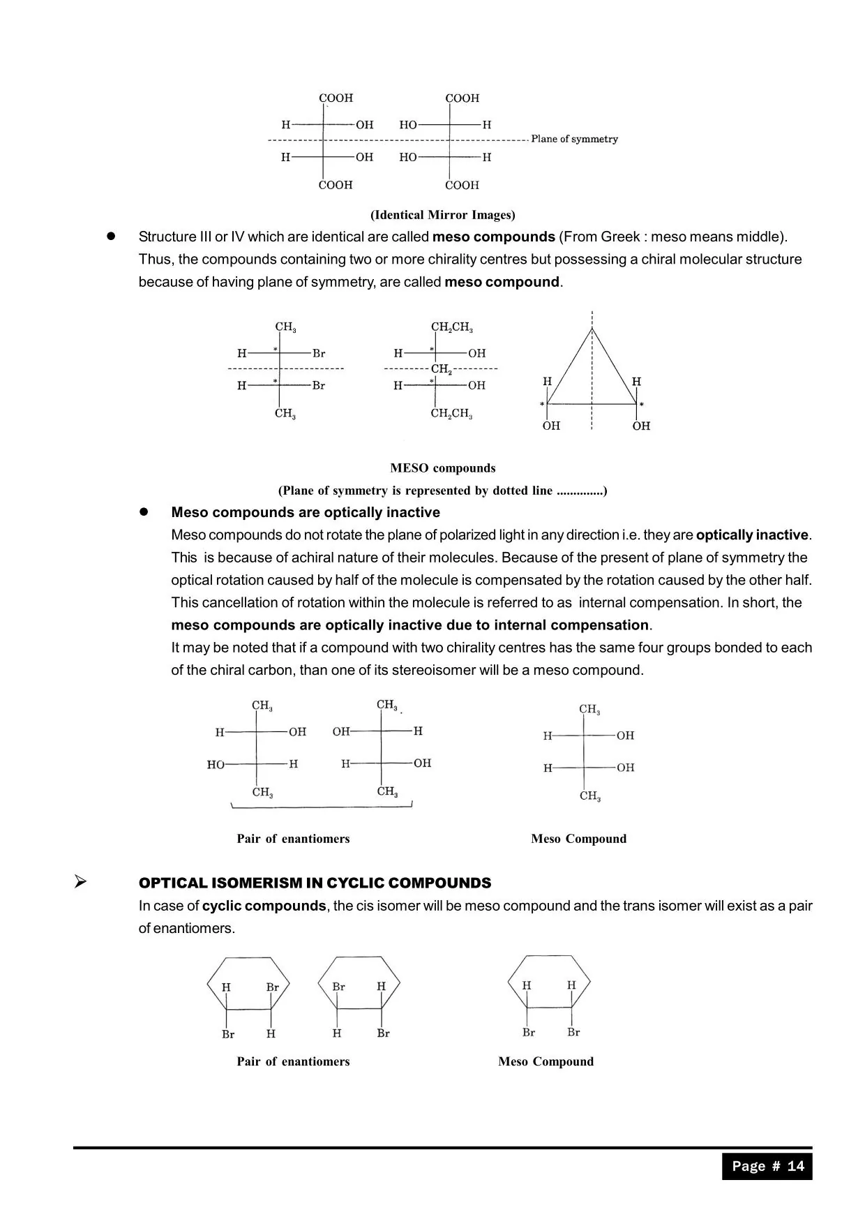 The second compound given on page no. 10 is optically inactive as it contains axis of symmetry ( rotate 180 degrees u get the same molecule ) hence enatiomerism is not valid .