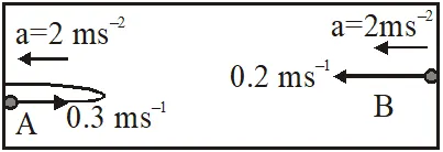 Maximum displacement of ball A from its left end is $\frac{\mathrm{u}_{\mathrm{A}}^{2}}{2 \mathrm{a}}=\frac{(0.3)^{2}}{2(2)}=0.0225 \mathrm{m}$