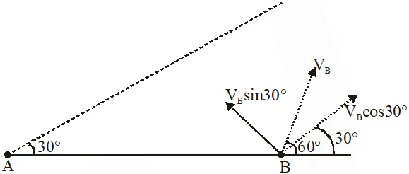 $\mathrm{t}=\frac{500}{\mathrm{V}_{\mathrm{B}} \sin 30}=\frac{500}{100}=5$