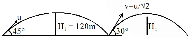 $\mathrm{H}_{1}=\frac{\mathrm{u}^{2} \sin ^{2} 45}{2 \mathrm{g}}=120$