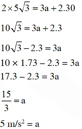 $\mathrm{S}=\mathrm{u}_{\mathrm{B}} \mathrm{t}+\frac{1}{2} \mathrm{at}^{2}$