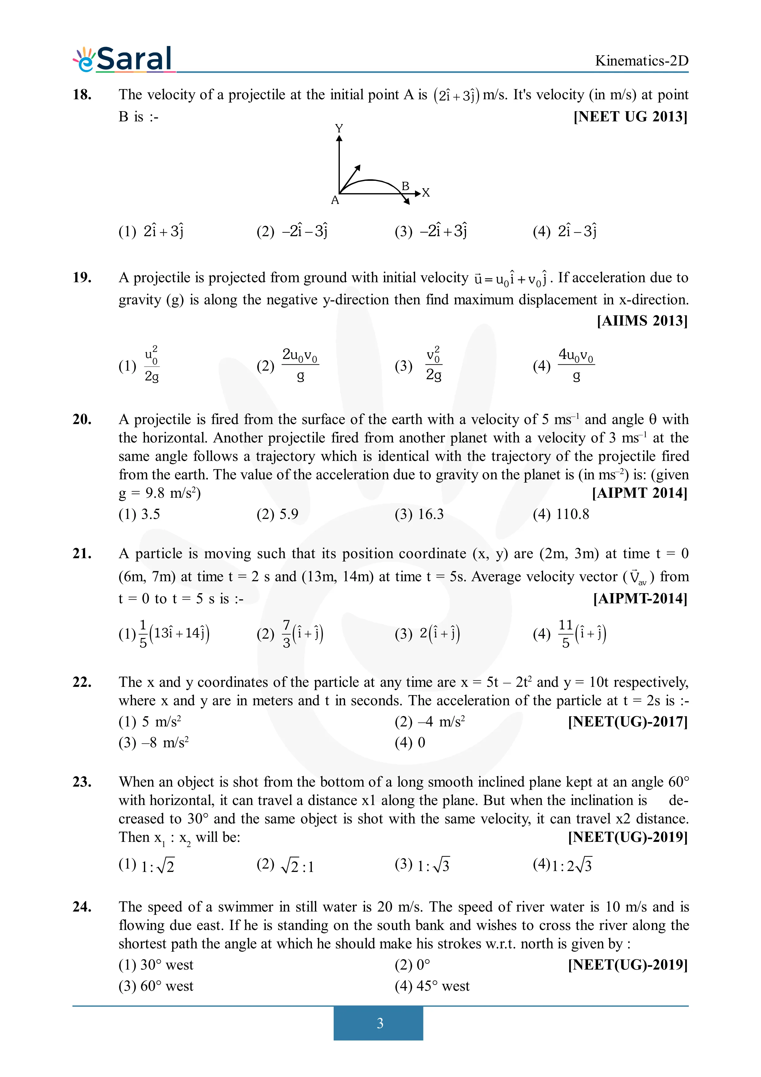 Here you will get Complete Kinematics 2D (Projectile Motion) NEET Previous Year Questions with complete and detailed solutions.