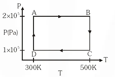 Two moles of helium gas are taken over the cycle ABCDA, as shown in the P–T diagram.