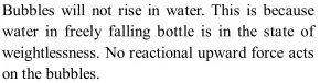 Q. A soda water bottle is falling freely. Will the bubbles of gas rise in the water of the bottle?