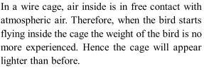 Q. A bird is sitting on the floor of a wire cage and the cage is in the hands of a boy. The bird starts flying in the cage. Will the boy experience any change in the weight of the cage?
