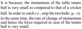 Q. It is easy to catch a table tennis ball than a cricket ball, even when both are moving with the same velocity. Why?