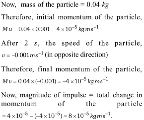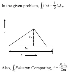 Q. A force acting on a material particle of mass $m$ first grows to a maximum value $F_{m}$ and then decreases to zero. The force varies with time according to a linear law, and total time of motion is $t_{m}$. What will be the velocity of the particle at the end of this interval if the initial velocity is zero