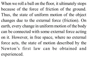 Q. The assertion made by the Newton's first law ofmotion that every body continues in its state of uniform motion in the absence of external force appears to be contradicted in everyday experience. Why?
