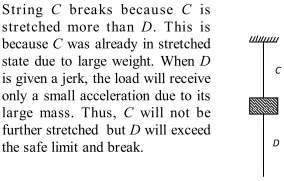 Q. A block is supported by a cord $C$ from a rigid support, and another cord $D$ is attached to the bottom of the block. If you give a sudden jerk to $D,$ it will break. But if you pull on $D$ steadily, $C$ will break. Why?