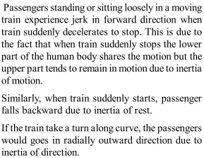 Q. Why do you fall forward when a moving train decelerates to a stop and fall backward when a train accelerates from rest? What would happen if the train rounded a curve at constant speed? [NCERT]