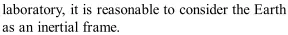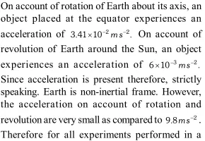 Q. "It is reasonable to consider the Earth as an inertial frame for many laboratory scale terrestrial experiments, but the Earth is a non-inertial frame of reference for astronomical observation." Explain this statement. Do you see how the same frame of reference is approximately inertial for one purpose, and non-inertial for the other? [NCERT]