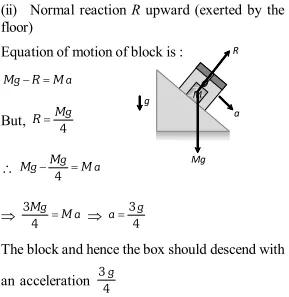 Q. With what acceleration ' $a^{\prime}$ should a box descend so that a block of mass $M$ placed in it exerts a force $\frac{\mathrm{Mg}}{4}$ on the floor of the box?