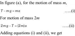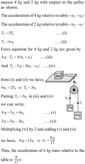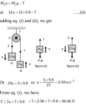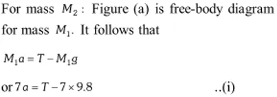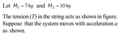 Q. Two masses 7 kg and 12 kg are connected at the two ends of a light inextensible strings that passes over frictionless pulley. Find the acceleration of the masses and the tension in the string, when the masses are released.