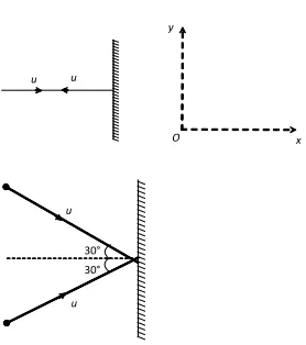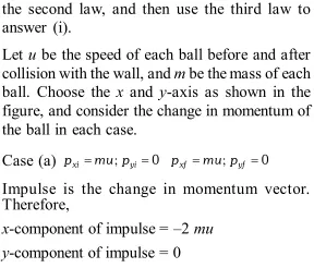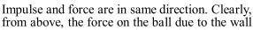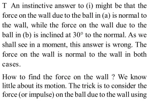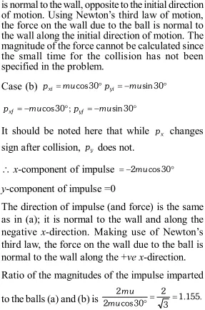 Q. Two identical billiard balls strike a rigid wall with the same speed but at different angles, and get reflected without any loss of speed, as shown in the figure below. What is (i) the direction of the force on the wall due to each ball? and (ii) the ratio of the magnitudes of impulses imparted on the two balls by the wall?