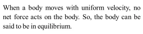 Q. A body is moving with uniform velocity. Can it said to be in equilibrium?