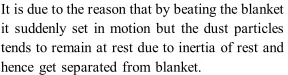 Q. Why do we beat dusty blanket with a stick to remove dust particle?