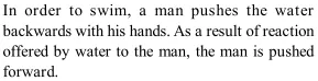 Q. Why does a swimmer push the water backwards?