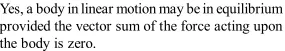 Q. Can a body in linear motion be in equilibrium?