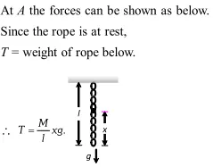 Q. A uniform rope of length and mass hung from a support. What is the tension at a distance from the free end?