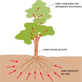 - At the roots, cells actively take up ions, creating a concentration difference that results in the movement of water through osmosis.