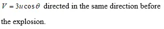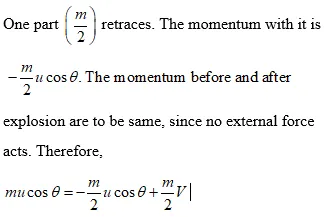 Q. A projectile is fired with a velocity $u$ at an angle to the horizontal. At the highest point, it breaks into two equal parts. If one part, retraces its path, what is the direction and velocity of the other part? Ans. Momentum at the highest point