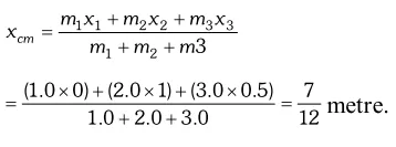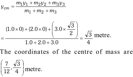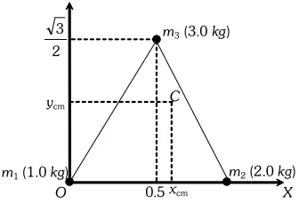 Q. Locate the centre of mass of a system of three particles of masses $1.0 \mathrm{kg}, 2.0 \mathrm{kg}$ and $3.0 \mathrm{kg}$ placed at the corners of an equilateral triangle of $1 \mathrm{metre}$side.