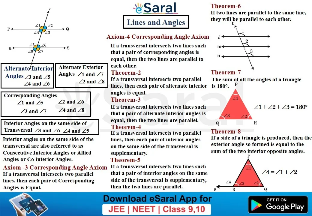 Class 9Get to learn all the formulae and important points of Lines and Angles through this Mind Map. Download and share with your friends also.