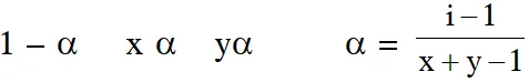 $(1) \alpha=\frac{\mathrm{x}+\mathrm{y}-1}{\mathrm{i}-1}$