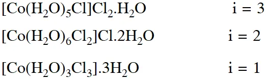 (3) $\left[\mathrm{Co}\left(\mathrm{H}_{2} \mathrm{O}\right)_{3} \mathrm{Cl}_{3}\right] \cdot 3 \mathrm{H}_{2} \mathrm{O}$