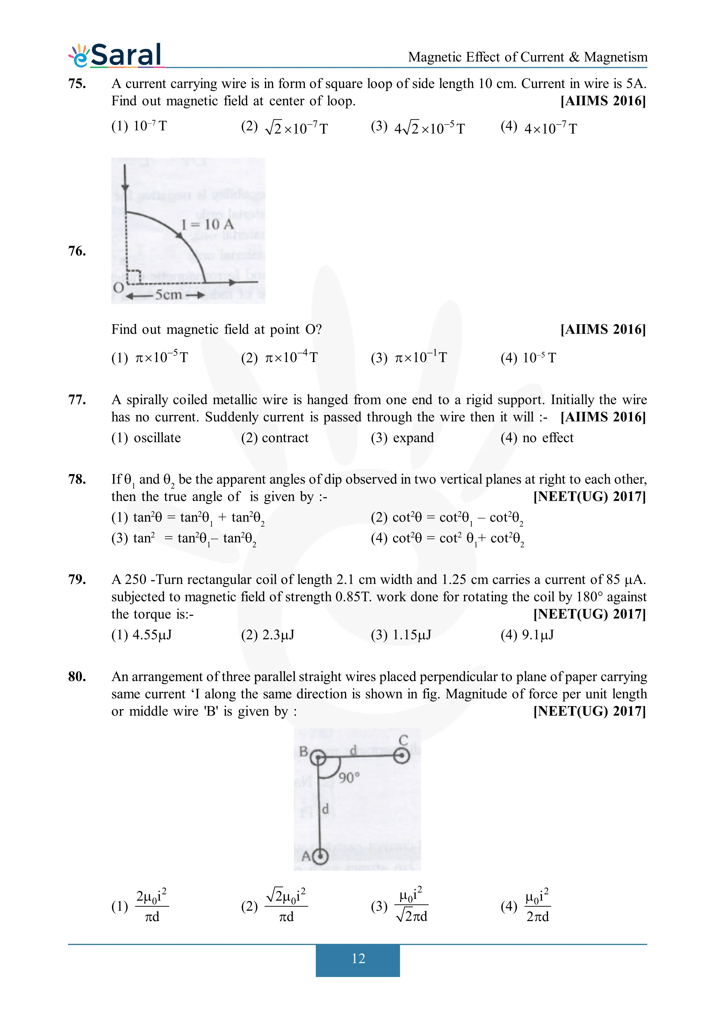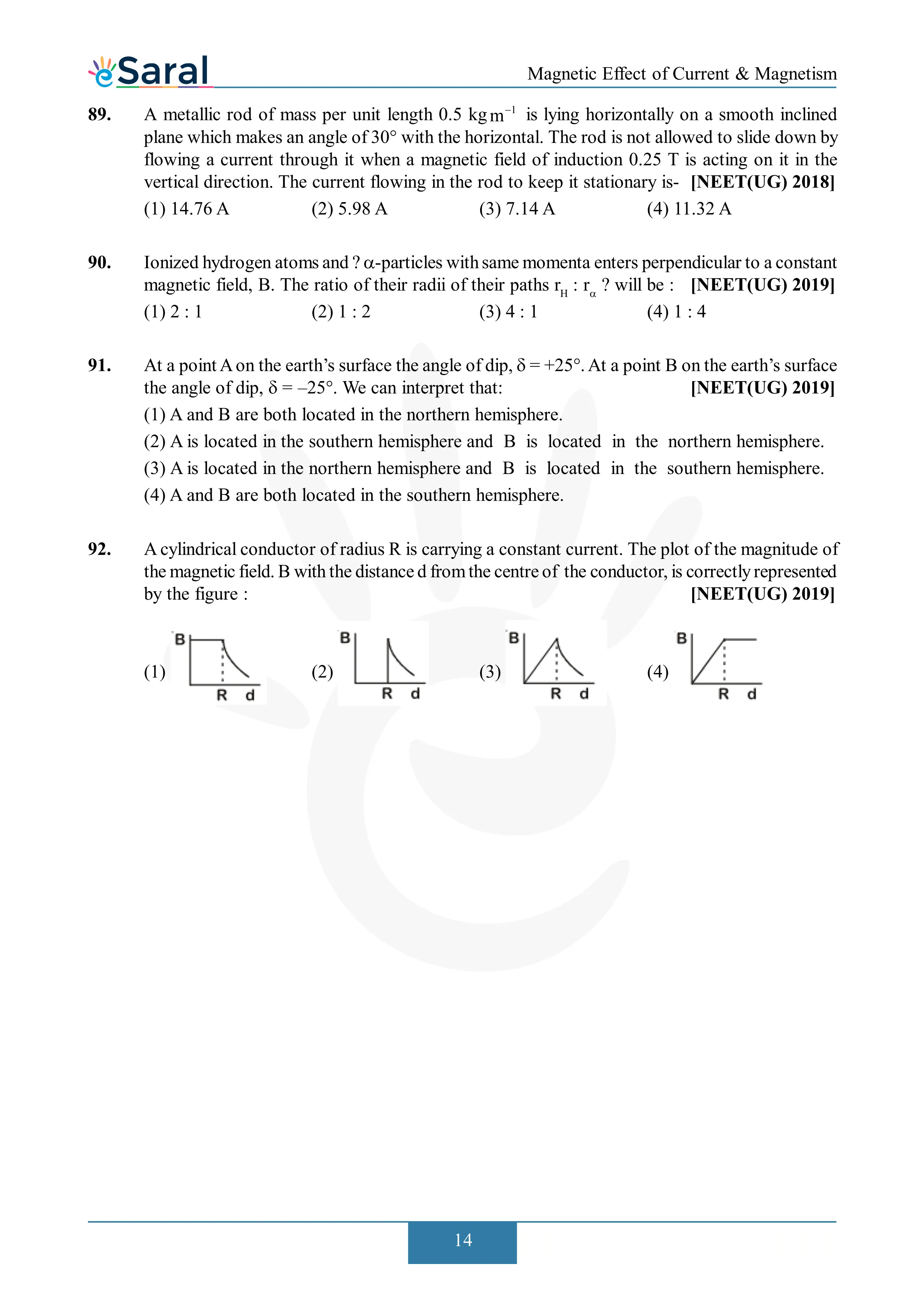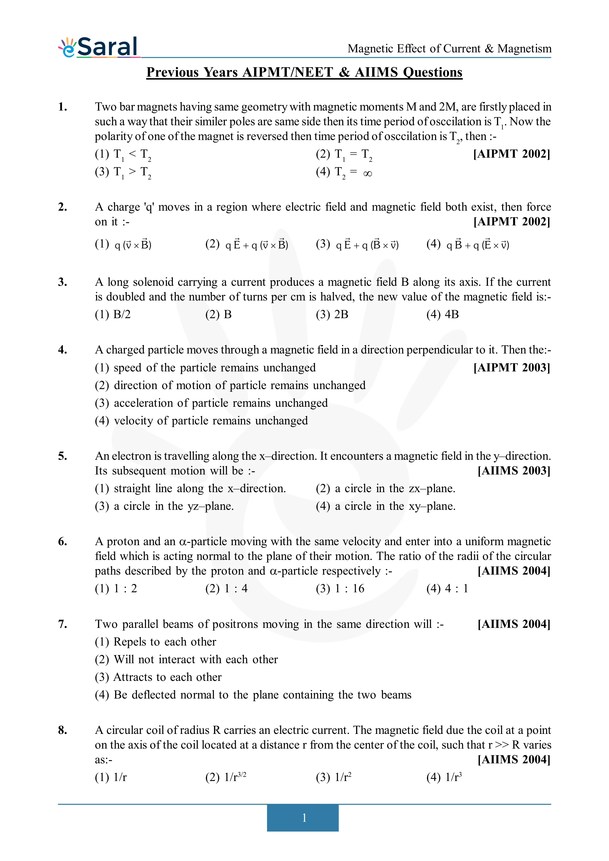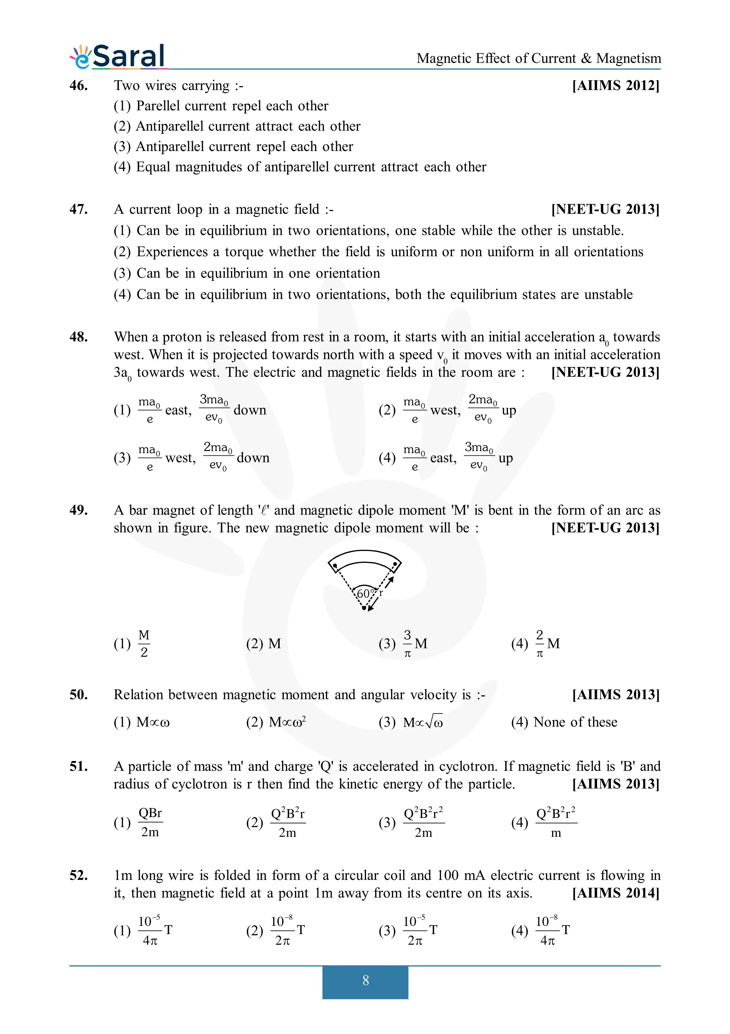 Here you will get Complete Magnetic Effect of Current & Electricity NEET Previous Year Questions with complete and detailed solutions.