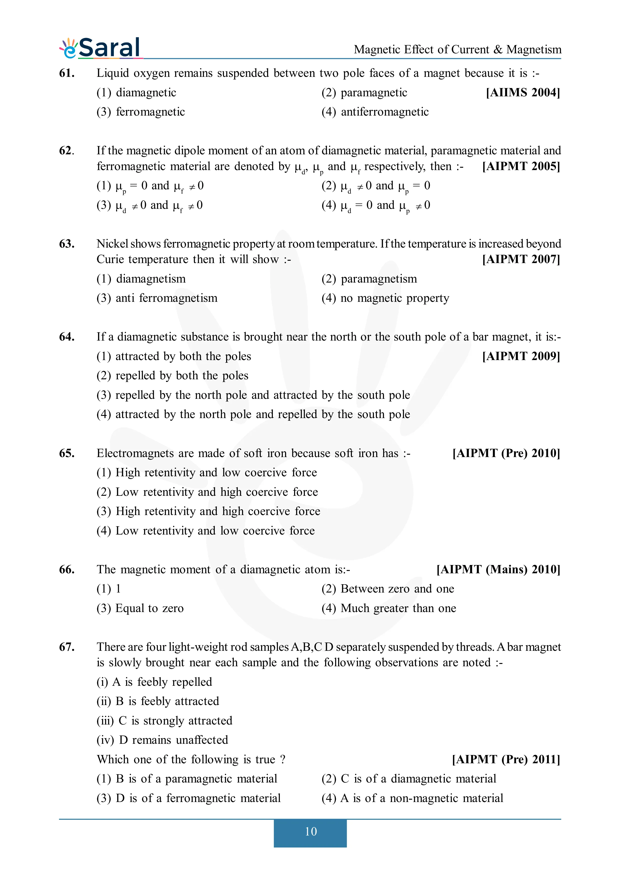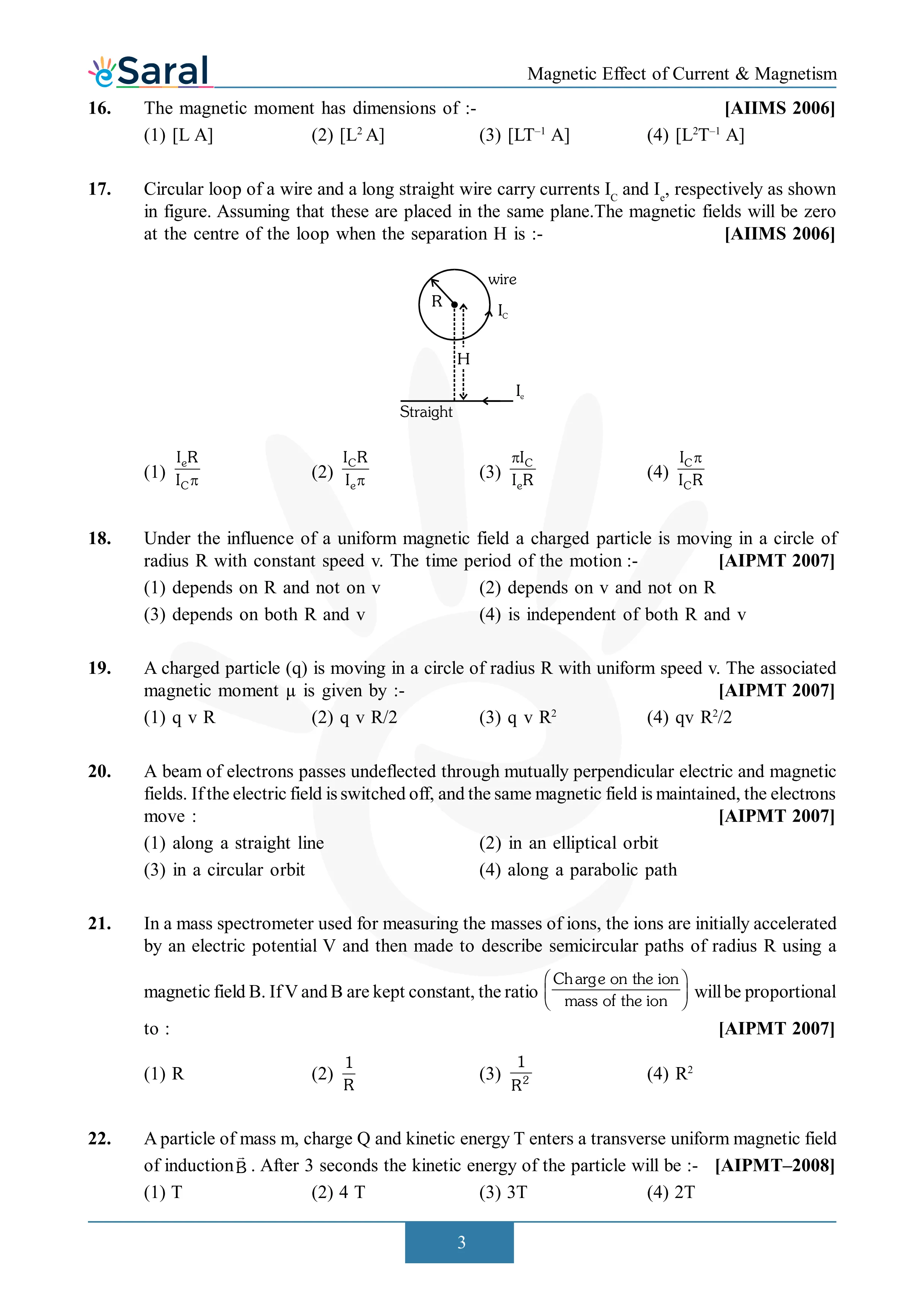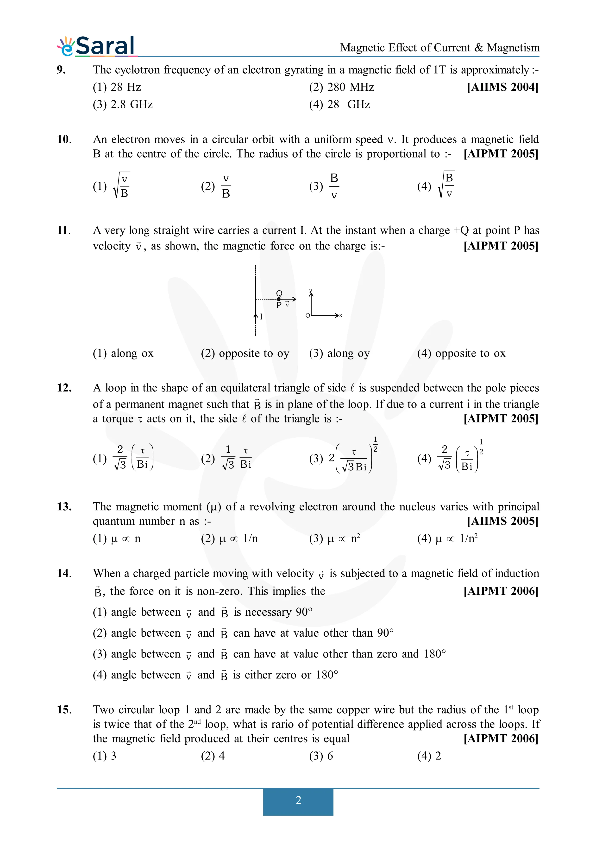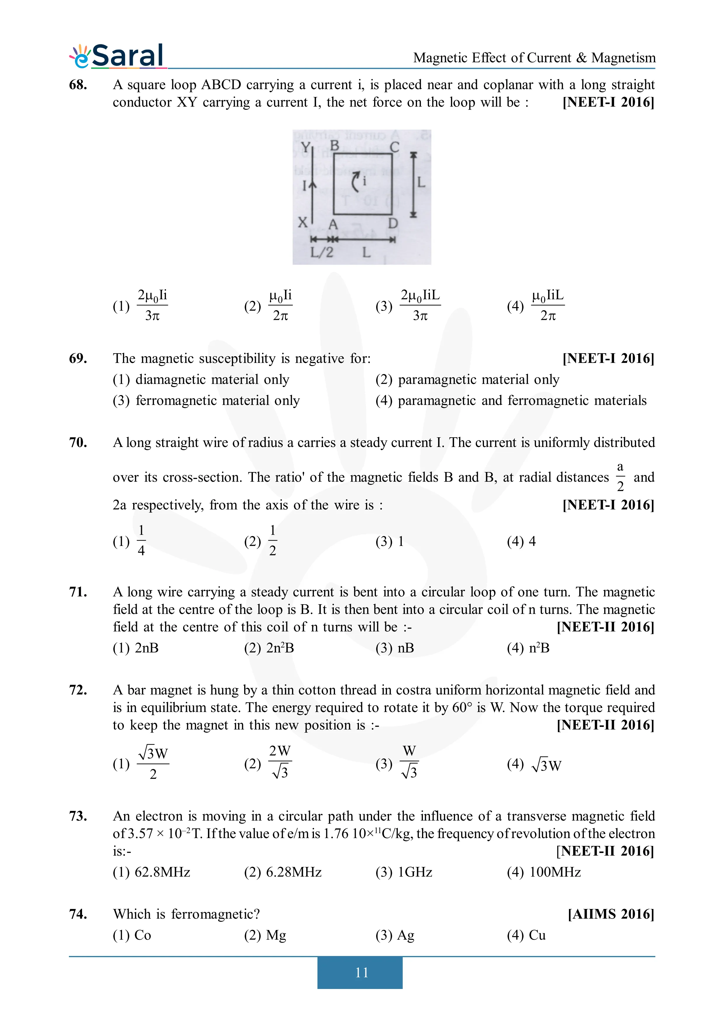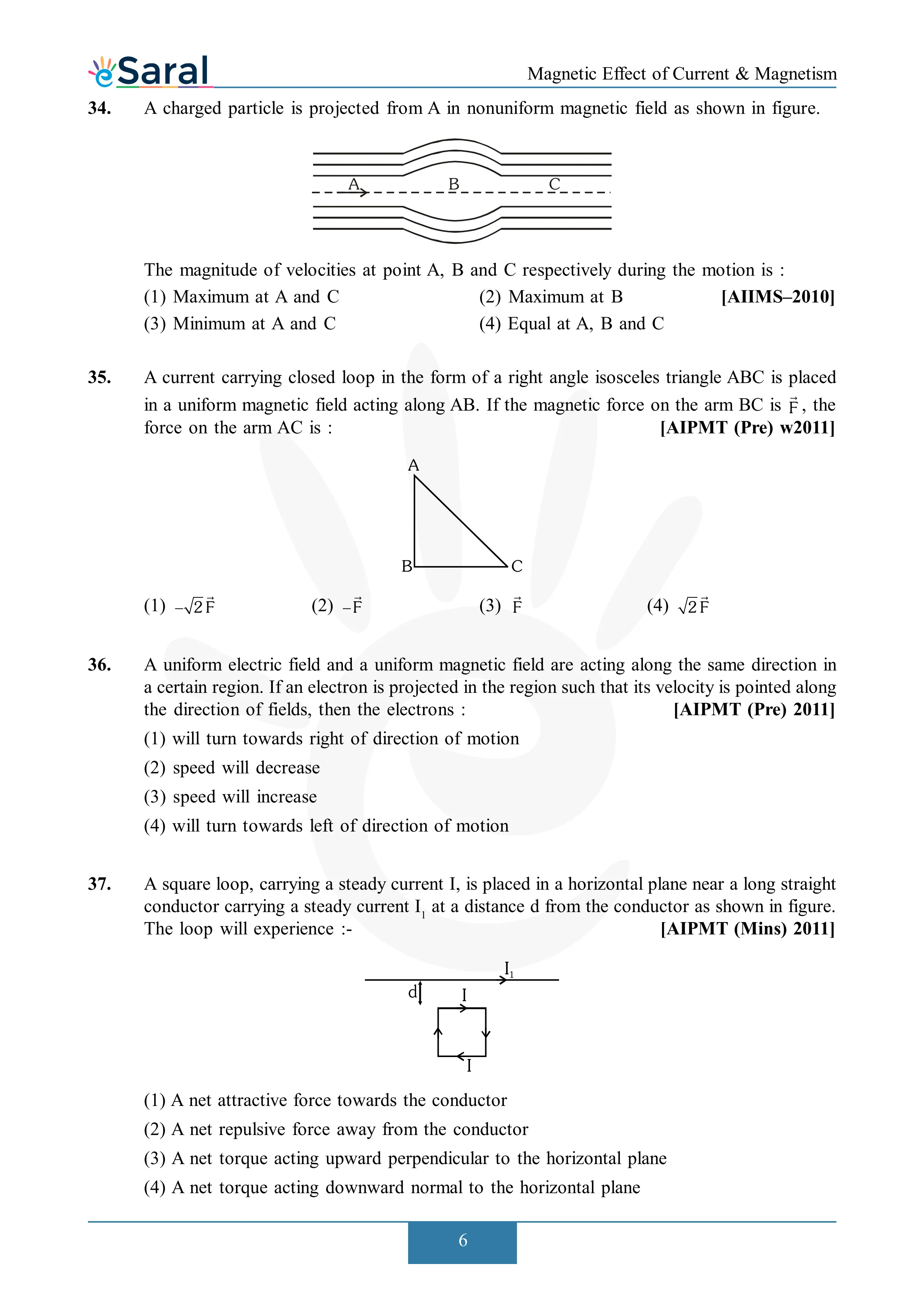 Here you will get Complete Magnetic Effect of Current & Electricity NEET Previous Year Questions with complete and detailed solutions.