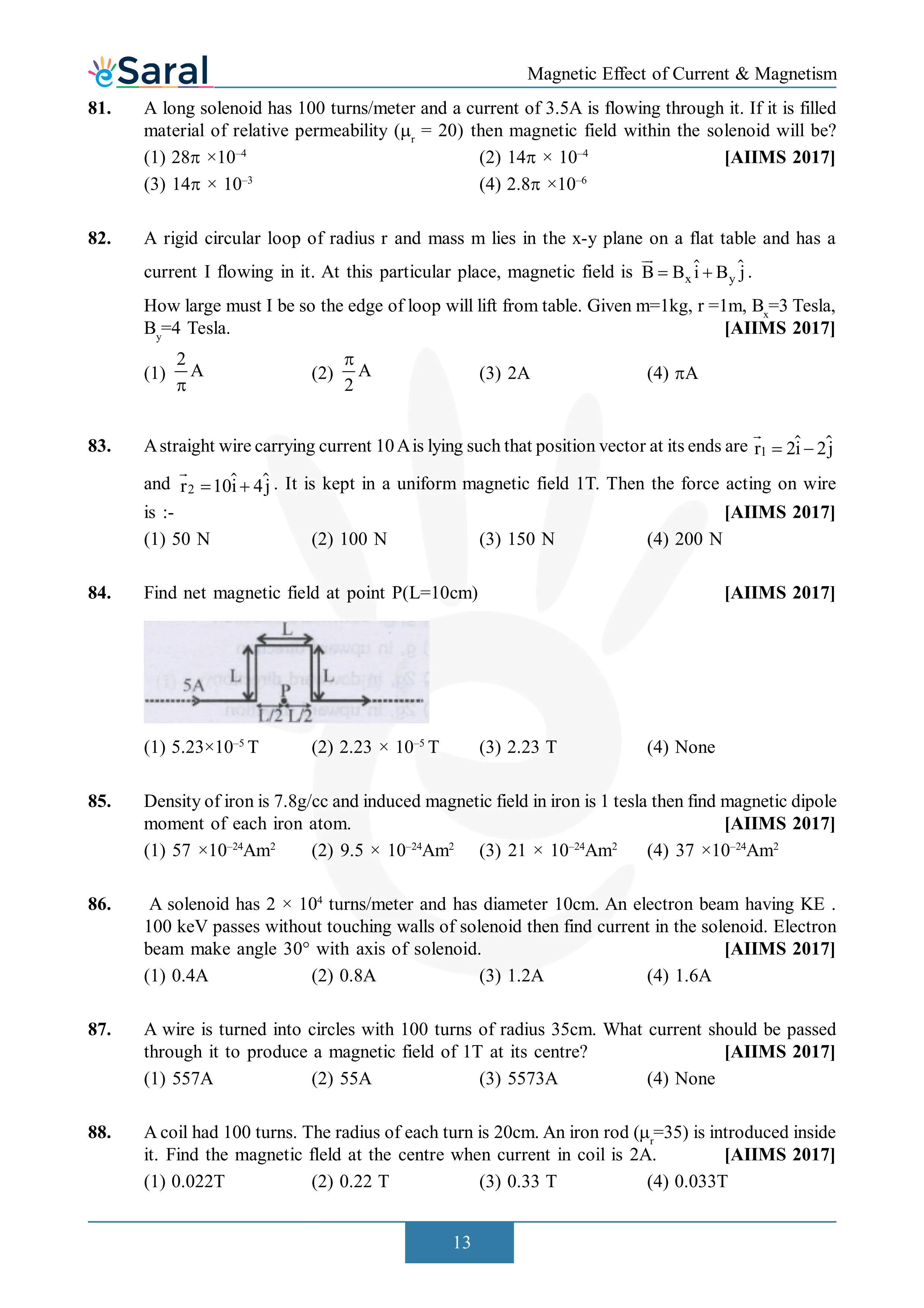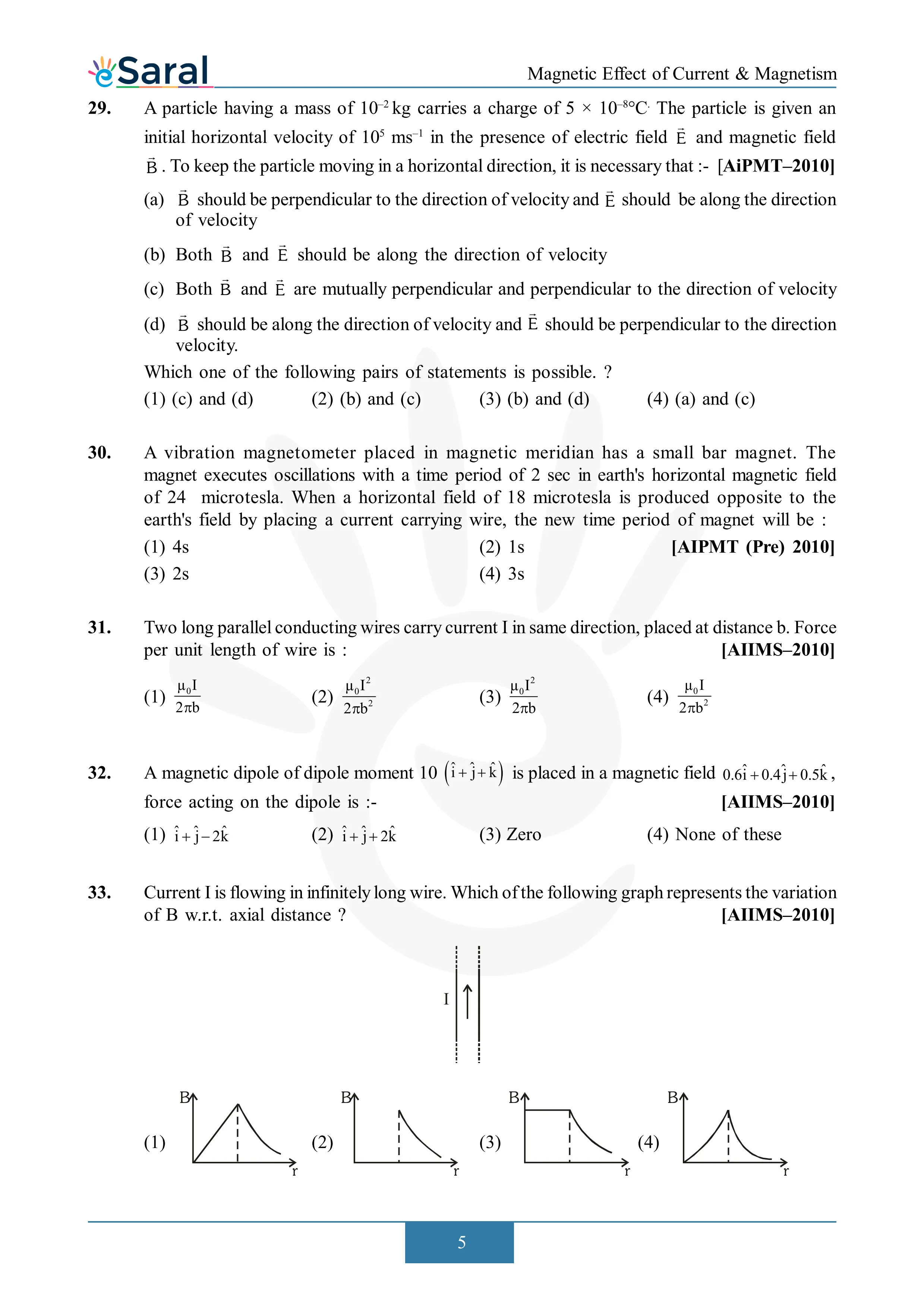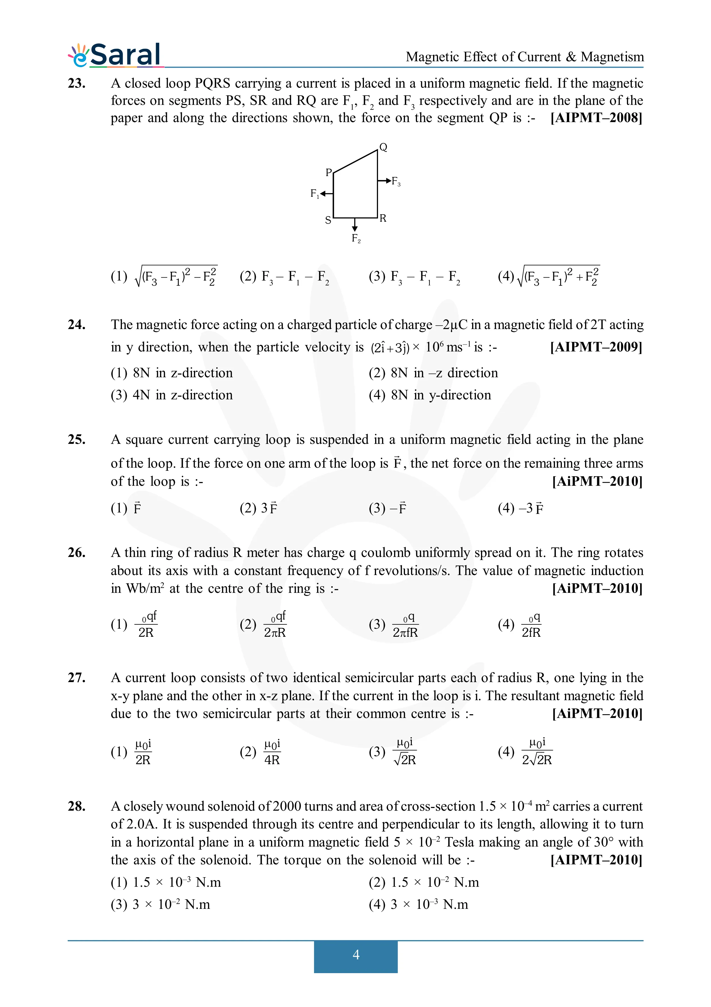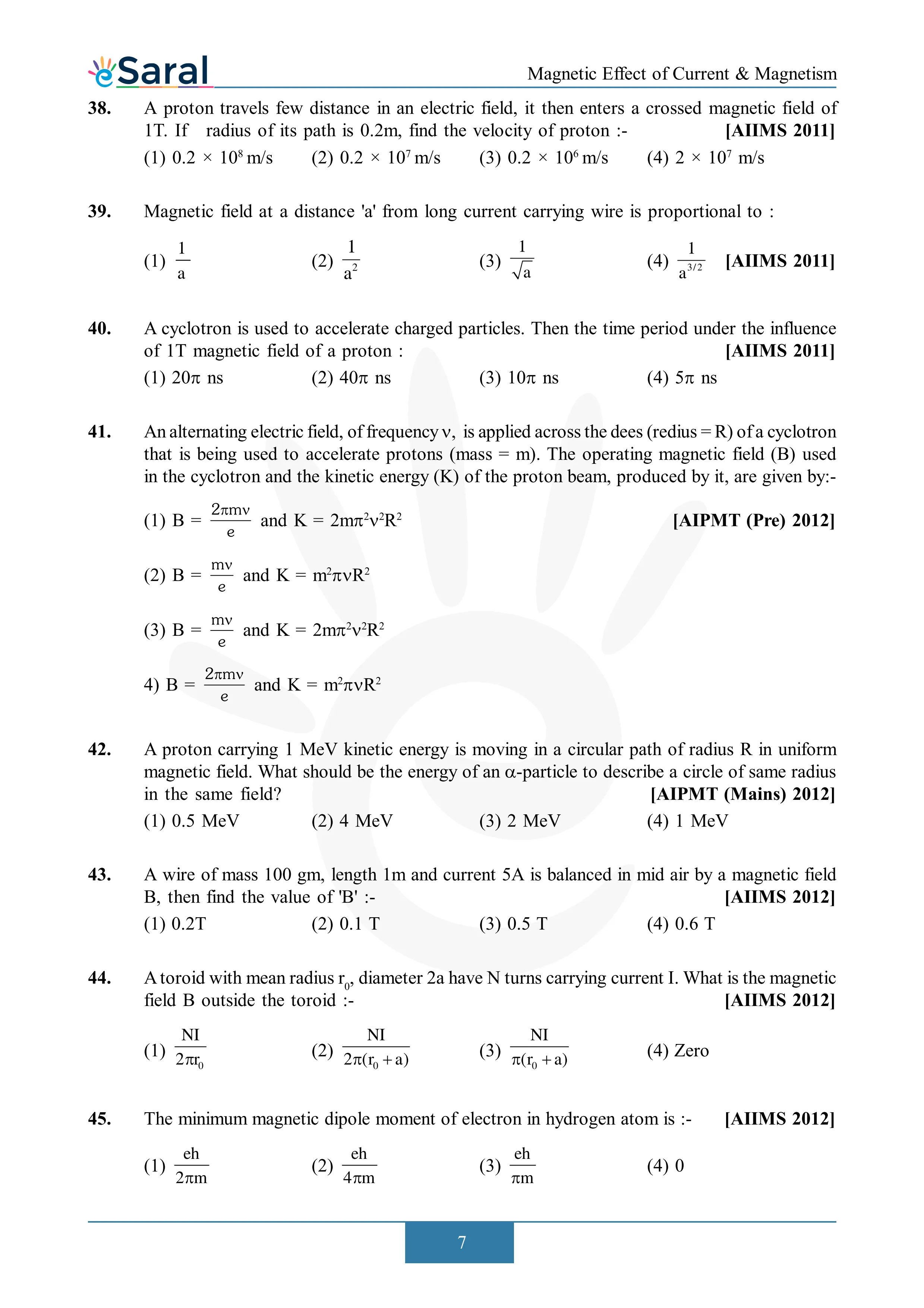 Here you will get Complete Magnetic Effect of Current & Electricity NEET Previous Year Questions with complete and detailed solutions.