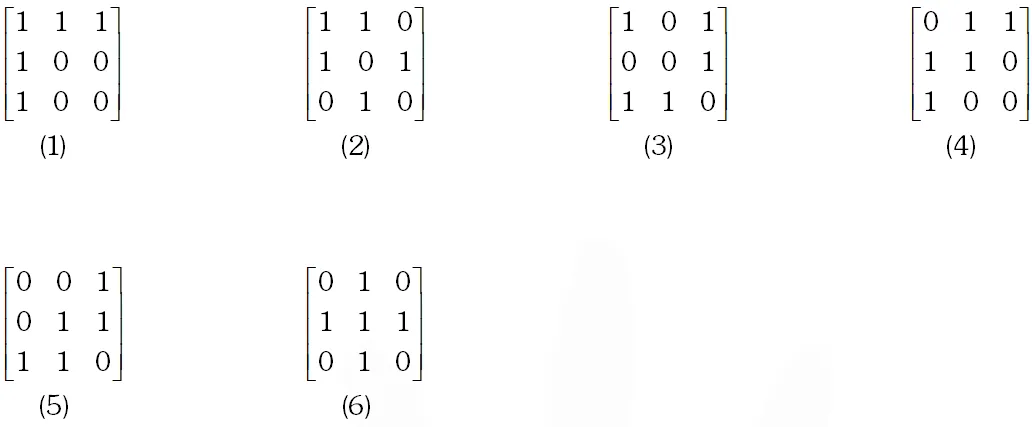 Q. Let A be the set of all 3 3 symmetric matrices all of whose entries are either 0 or 1. Five of these entries are 1 and four of them are 0.