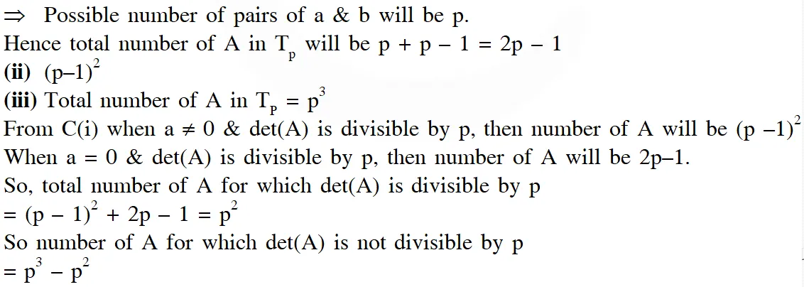 (iii) The number of $A$ in $T_{p}$ such that $\operatorname{det}(A)$ is not divisible by $p$ is –