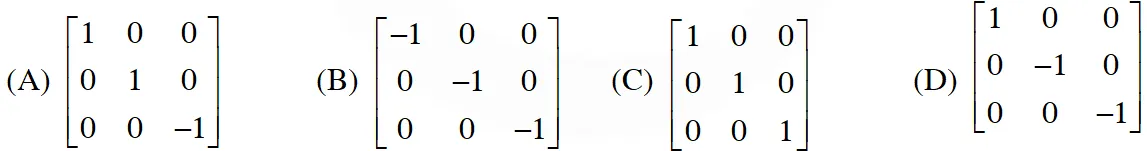 $\mathrm{x}^{\mathrm{T}}=-\mathrm{x}, \mathrm{y}^{\mathrm{T}}=-\mathrm{y}, \mathrm{z}^{\mathrm{T}}=\mathrm{z}$