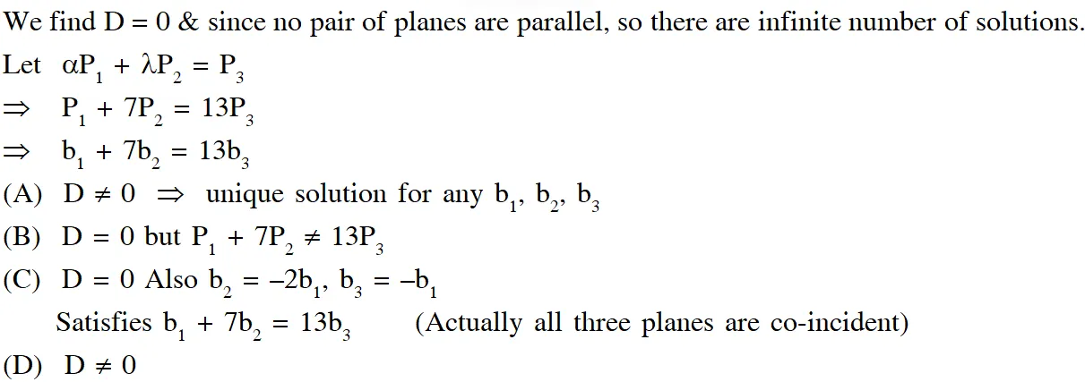 (C) $-\mathrm{x}+2 \mathrm{y}-5 \mathrm{z}=\mathrm{b}_{1}, 2 \mathrm{x}-4 \mathrm{y}+10 \mathrm{z}=\mathrm{b}_{2}$ and $\mathrm{x}-2 \mathrm{y}+5 \mathrm{z}=\mathrm{b}_{3}$