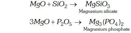Ans. The role of magnesium oxide is to act as flux (basic) and it removes certain acidic impurities in the form of slag.