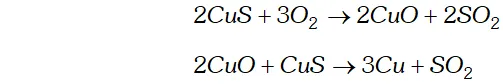 When whole of iron has been removed as slag, some of the undergoes oxidation to form which then reacts with more to form copper metal.