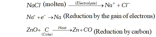 Ans. - The electrolytic reduction takes place at the cathode by the gain of electrons in electrolysis. At the same time, carbon reduction is carried by heating a metal oxide with coke. For example,