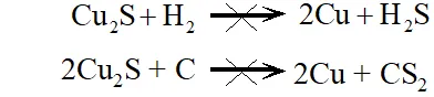 Ans. - The standard free energy $\left(\Delta_{f} G^{\circ}\right)$ of formation of $C u_{2} S$ is greater than those of $C S_{2}$ and $H_{2} S\left(C S_{2}\right.$ is, infact, an endothermic compound). Therefore, neither carbon nor hydrogen can reduce to $\mathrm{Cumetal.}$