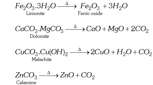 Ans. The process of converting carbonates and hydroxide ores of metals to their respective oxides by heating them strongly below their melting points either in absence or limited supply of air is called calcination.