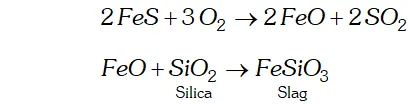 Thus, copper matte is heated in silica lined converter to remove FeS present in matte as slag.