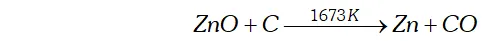 (c) Reduction. Zinc oxide obtained above is mixed with powdered coke and heated to $1673 \mathrm{K}$ in a fire clay retort when it is reduced to zinc metal