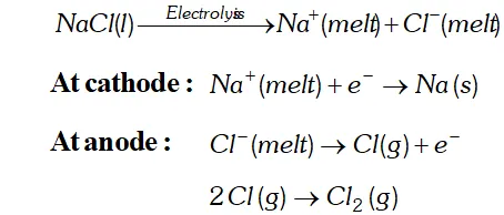 (b) If an aqueous solution of sodium chloride is used, then sodium metal which is formed at cathode will immediately react with water. Since sodium has a very strong affinity for water, the reaction will be highly exothermic and the metal will catch fire.