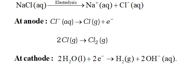Q. Name the process from which chlorine is obtained as a byeproduct. what will happen if an aqueous solution of $N a C l$ is subjected to electrolysis?