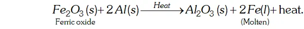(d) In the thermit process, oxides of metals like iron are reduced by aluminium. The reaction is highly exothermic and a large amount of heat is evolved in the reaction. As a result, the metal will be in the molten state. For example,